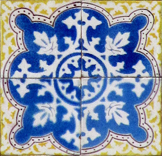 Como podemos ver nas fotos, todos os azulejos nestes imóveis são holandeses, com excessão (provável) dos azulejos usados nos cantos dos frisos, que permanecem desconhecidos por mim. Este ornamento nas pontas dos frisos formado com 4 azulejos também aparece em outro post sobre o Catete aqui no blog, que pode ser visto neste link [>>].