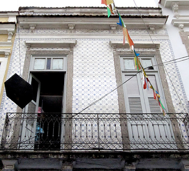 Mais uma vez, apresento um post onde tive que deixar de lado meu preconceito. Quando fotografei estes azulejos, o fiz apenas pela "obrigação" do registro, pois eu na verdade não me encantei muito com eles. Me pareciam "azulejos de banheiro", não me pareciam dignos de uma fachada. E ainda por cima me pareciam recentes demais, alguma coisa como segunda metade do séc. XX.